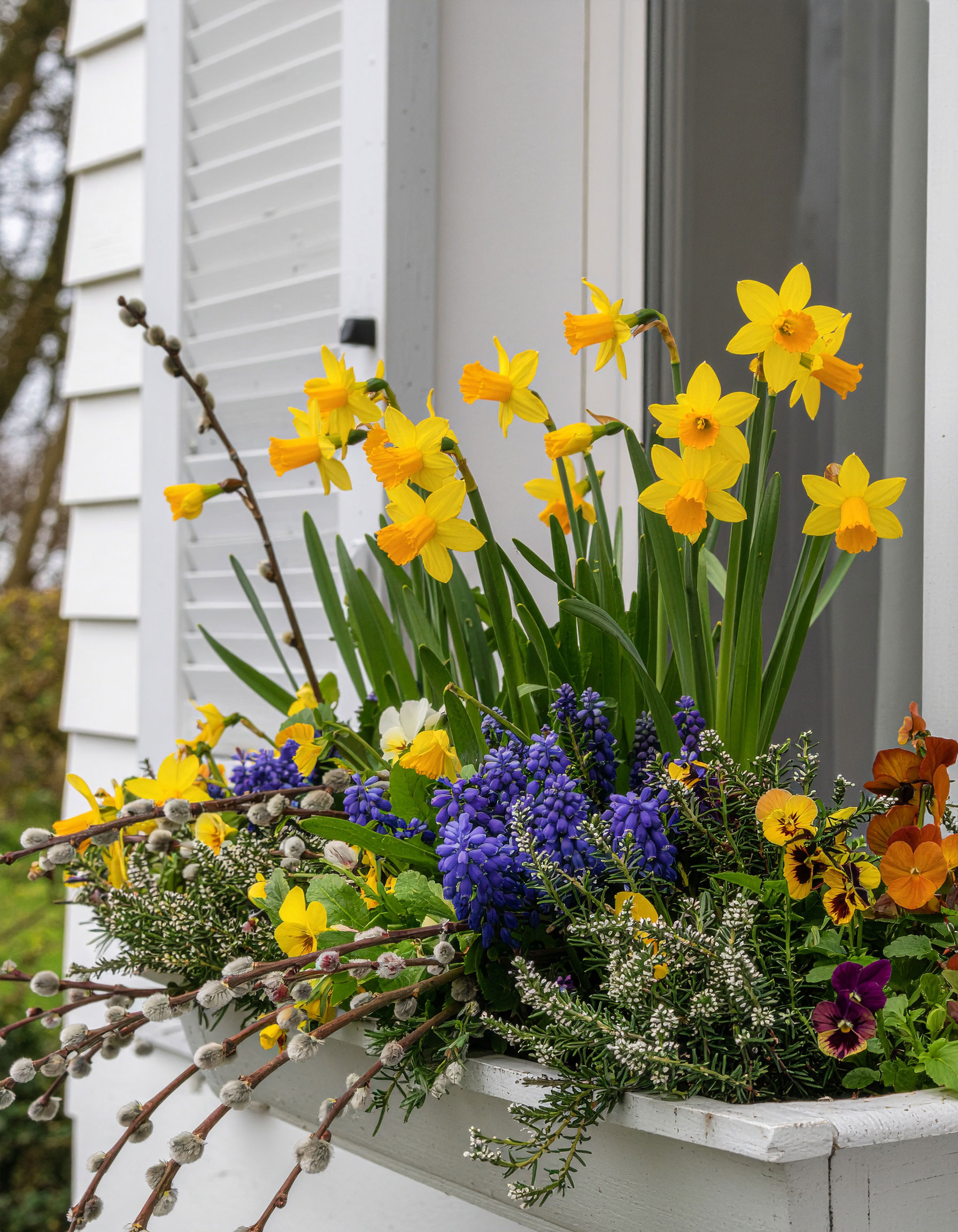 Window boxes have a way of bringing the garden closer to the house. Even a small planter beneath a window can add color, movement, and seasonal interest right where people notice it most. Early spring is an especially good time to experiment with combinations of bulbs and cool weather flowers.