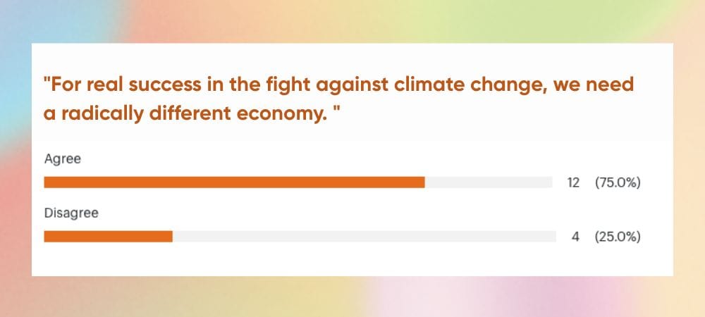 We wanted to know how they are thinking about the future of climate action in Canada. Sixteen people responded to the survey. Here’s what they said.
