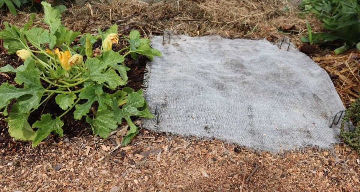 Peg a bit of sacking over top direct sown seed to protect it from drying out. Once the seedlings are up peel the cover off and if there are lots of birds at yours, cover with bird net.